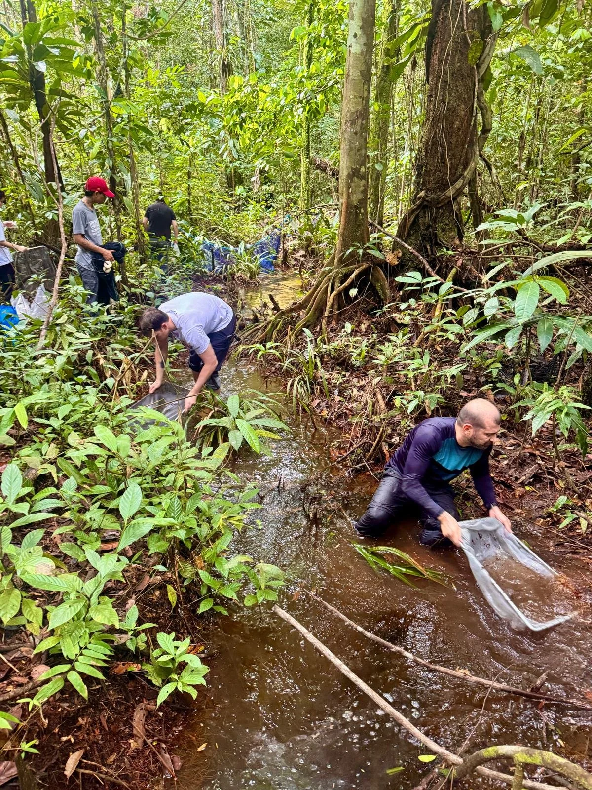 We had the opportunity to undertake mist netting surveys for bats and birds, camera trapping, herpetology transects, moth trapping and sweep netting for invertebrates and we even got to survey Amazonian fish which included getting in the streams with snorkels!